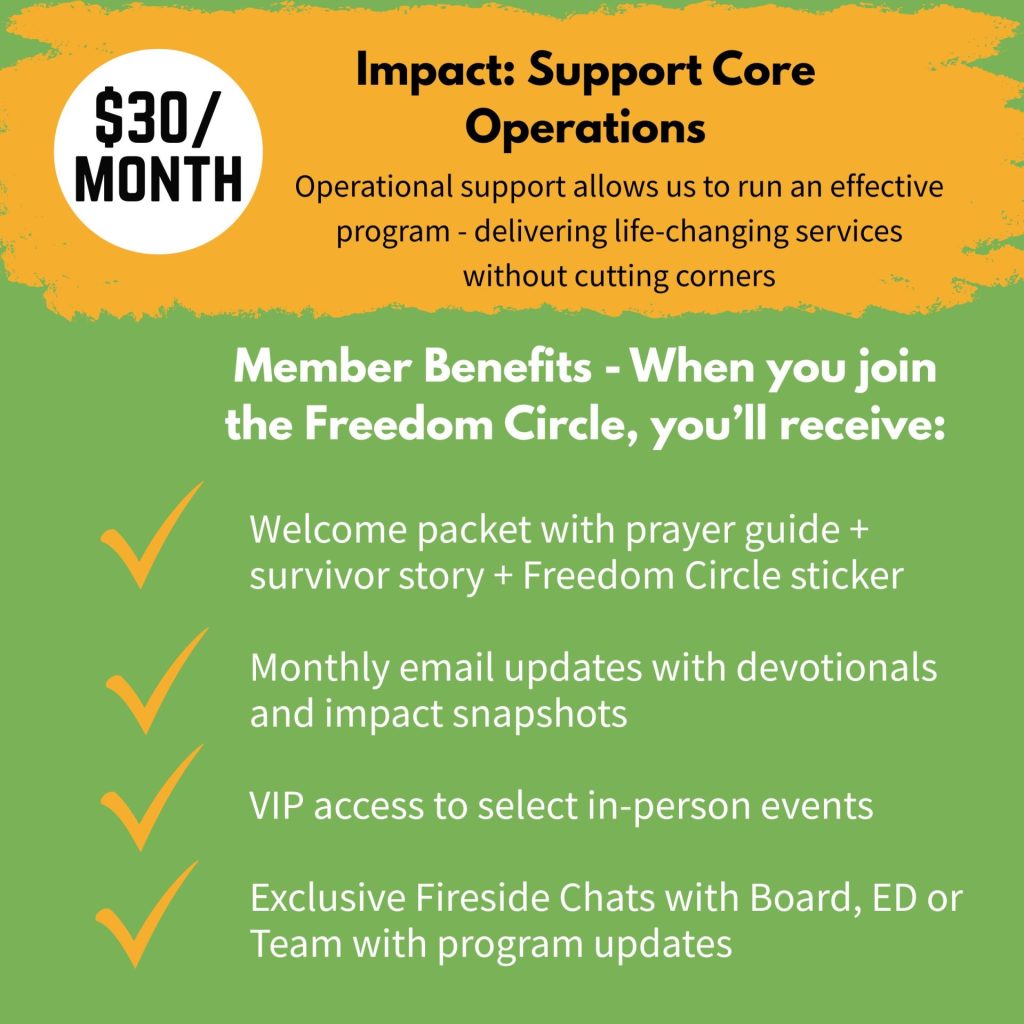 Together we’re tearing every one of those barriers down. We’ve already built a path to freedom for 80+ survivors. With you, we’ll build it for hundreds more.